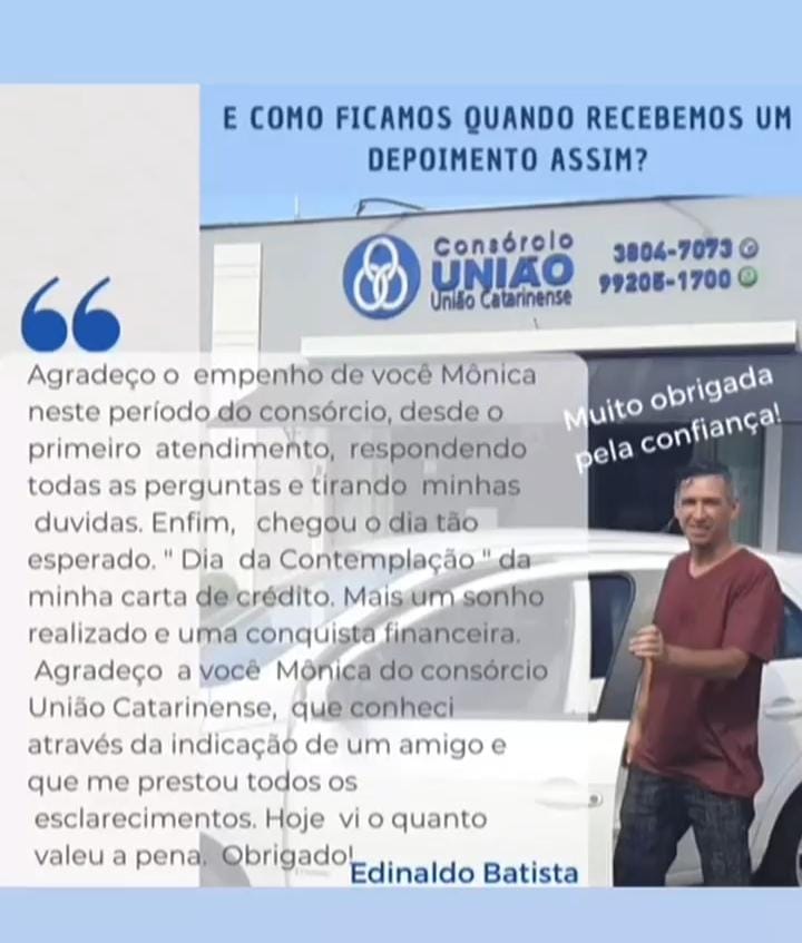 Contamos com uma equipe formada, altamente especializada e com profundo conhecimento de mercado. Somos representantes autorizados do Consórcio União Catarinense. A maior administradora de Santa Catarina, com mais de 40 anos no mercado..